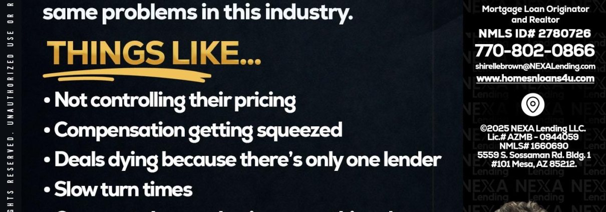 Hi, my name is Shirelle Brown. I’m a Loan Officer with NEXA Lending LLC., offering personalized mortgage solutions, fast customized quotes, great rates and service with integrity.