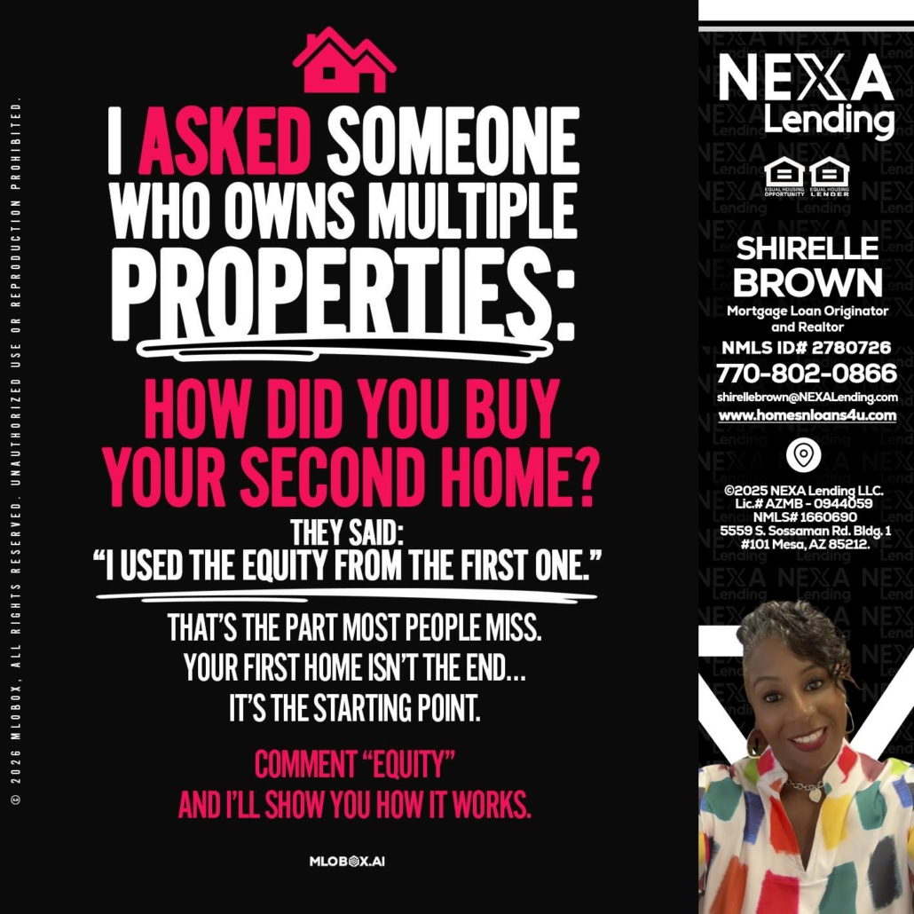 Hi, my name is Shirelle Brown. I’m a Loan Officer with NEXA Lending LLC., offering personalized mortgage solutions, fast customized quotes, great rates and service with integrity.