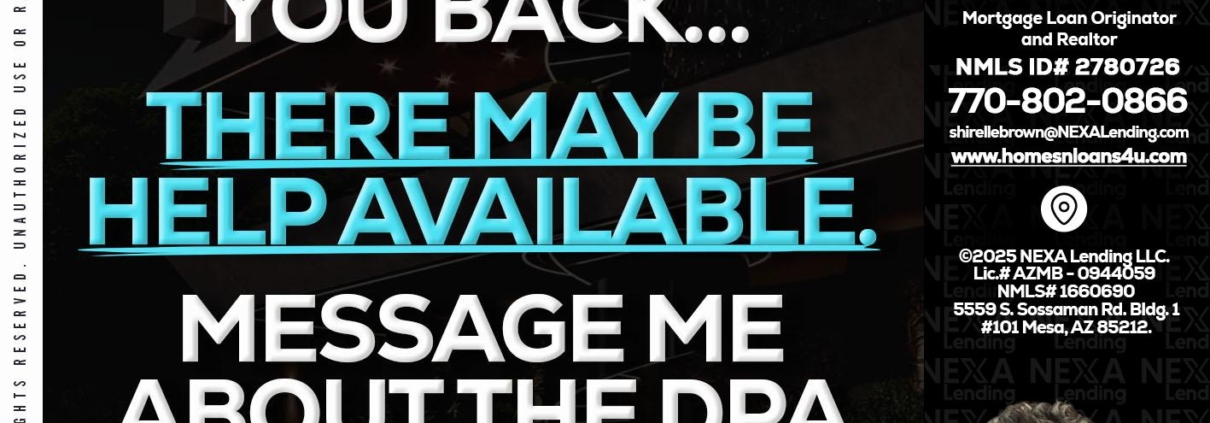 Hi, my name is Shirelle Brown. I’m a Loan Officer with NEXA Lending LLC., offering personalized mortgage solutions, fast customized quotes, great rates and service with integrity.