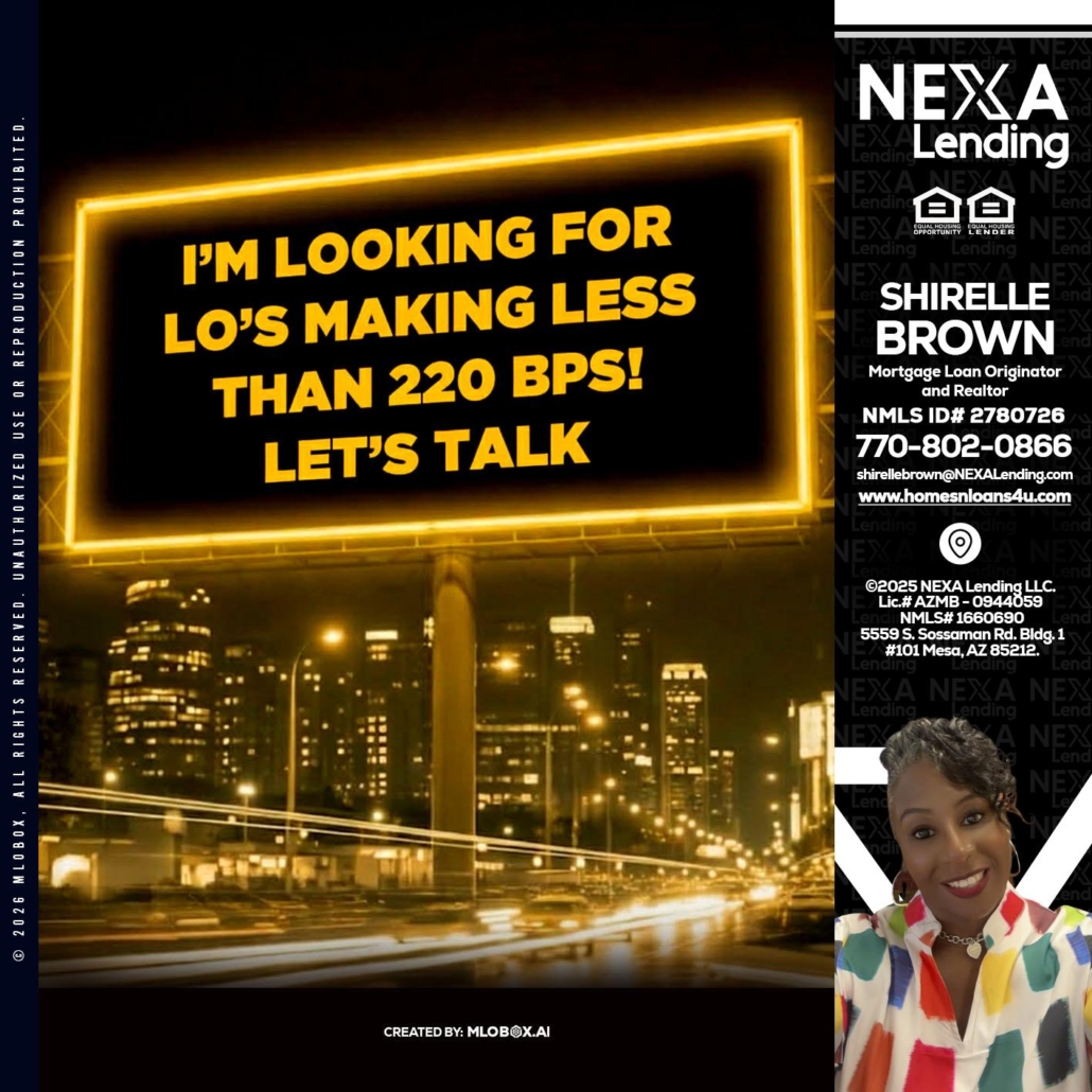 Hi, my name is Shirelle Brown. I’m a Loan Officer with NEXA Lending LLC., offering personalized mortgage solutions, fast customized quotes, great rates and service with integrity.