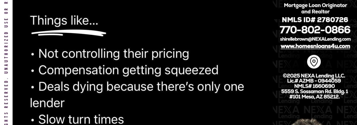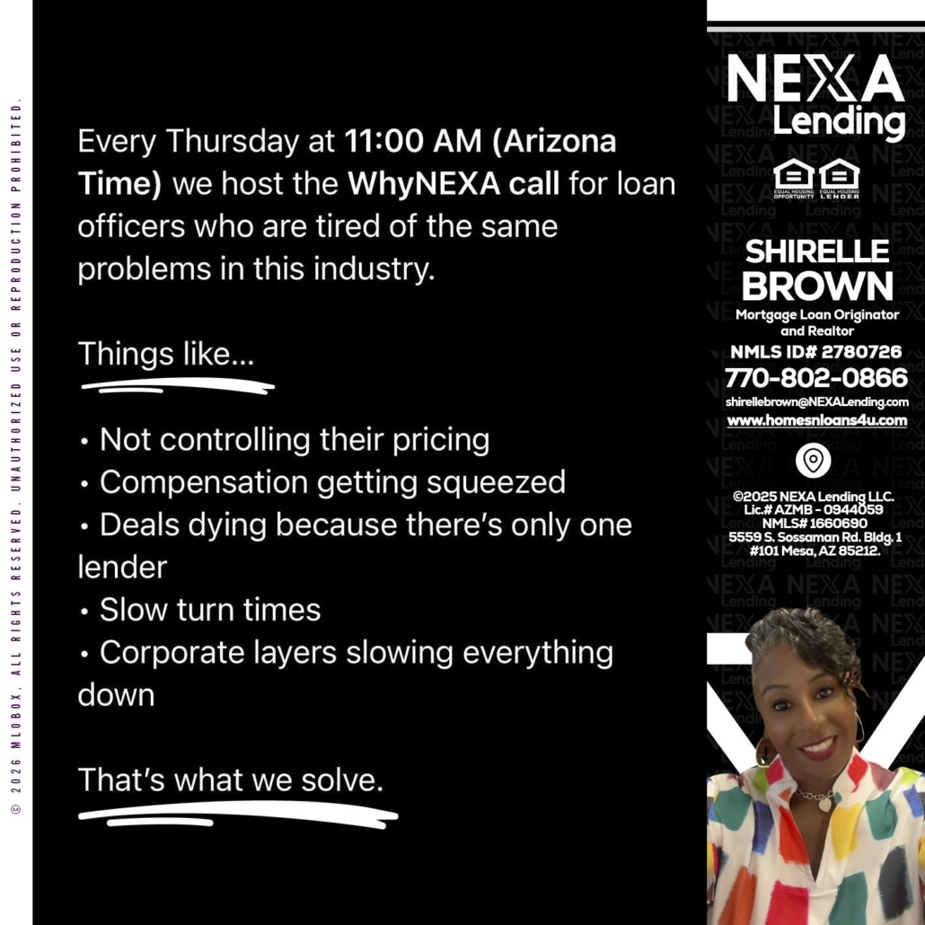 Hi, my name is Shirelle Brown. I’m a Loan Officer with NEXA Lending LLC., offering personalized mortgage solutions, fast customized quotes, great rates and service with integrity.